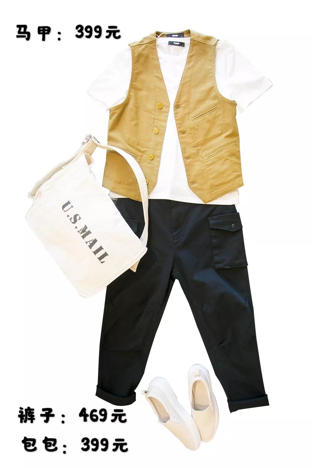 加上(shàng)簡單的卡其色九分褲